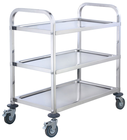 A kitchen essential using the Winco Utility Trolley, this 3-tier small size stainless steel trolley is designed to meet the rigorous demands of a b...