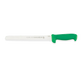Enhance Culinary Precision Seamlessly with the Mundial G5627-10E Slicer Knife. Designed specifically for commercial restaurant use, this knife is a must-have tool for any professional chef. The 10" serrated edge allows for effortless slicing of meats, breads, and more, ensuring consistent and precise cuts every time. The blade is made from high carbon/no stain steel, guaranteeing durability and resistance to corrosion. The molded green polypropylene handle provides a comfortable grip, allowing for extended use without discomfort. Additionally, the handle is treated with sanitized antimicrobial protection, ensuring a hygienic and safe cooking environment. With its NSF certification, this knife meets the highest standards of quality and safety. Elevate your culinary skills and efficiency with the Mundial G5627-10E Slicer Knife.